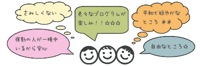 入居後ご本人のペースで、現在の健康状態・生育歴・今後に希望などお伺いします。今後の支援を考えるために必要となるものです。なお、ご本人に関する個人情報・相談内容は厳重に管理し秘密を保持します。
